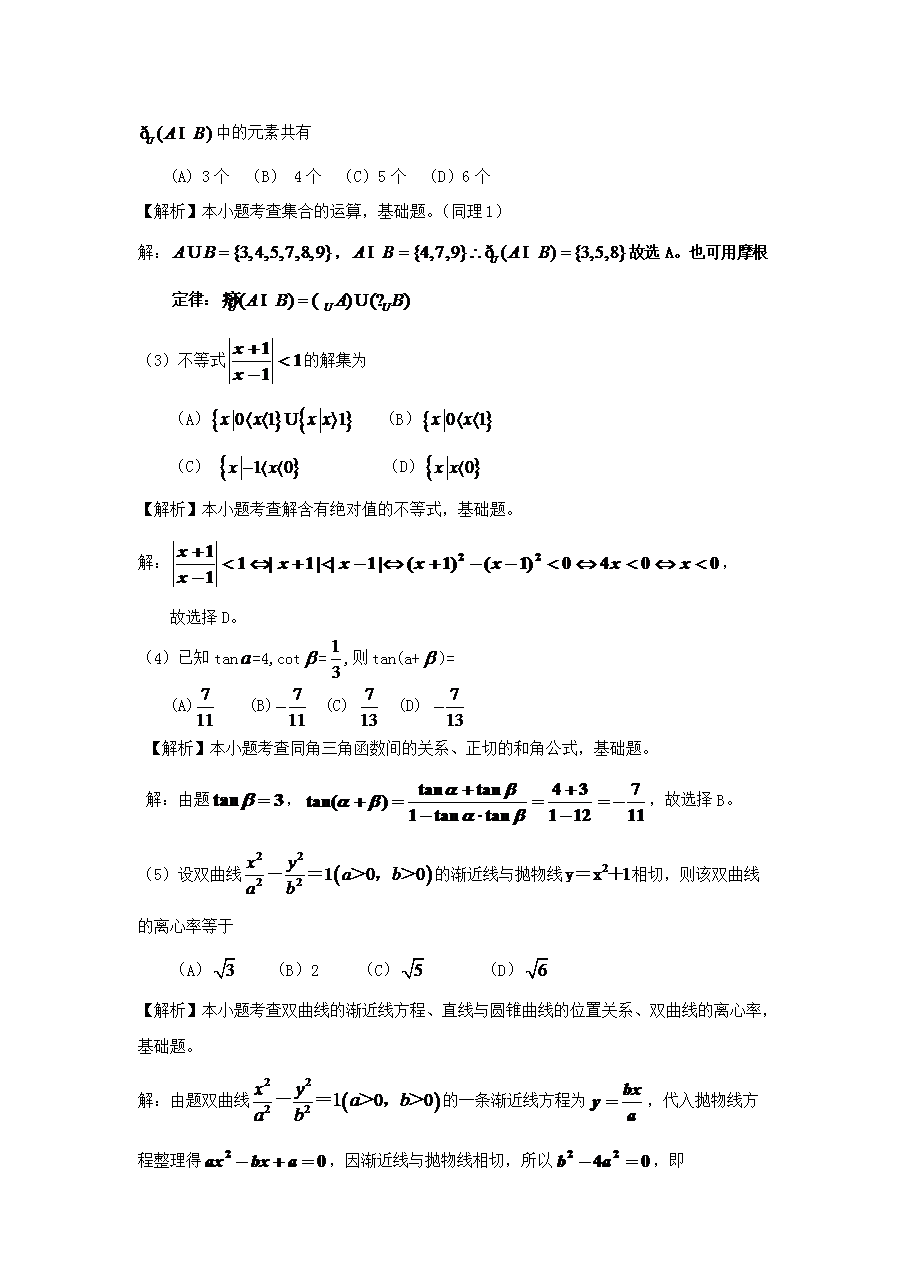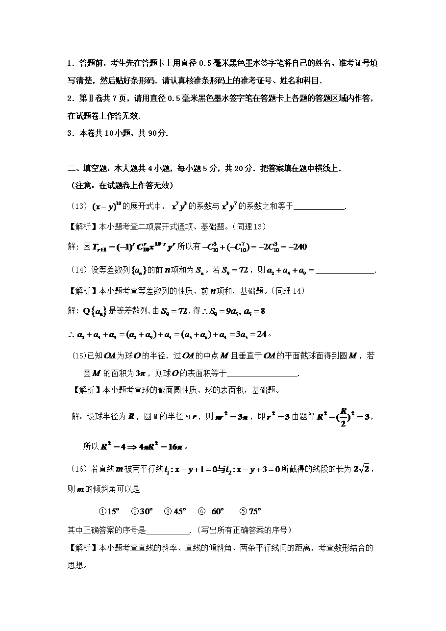 【文档名称】 2009年广西高考文科数学试题及答案(Word版).doc