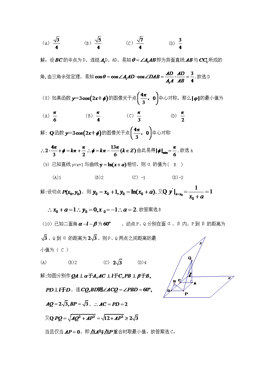 【文档名称】 2009年河南高考理科数学试题及答案(Word版).doc