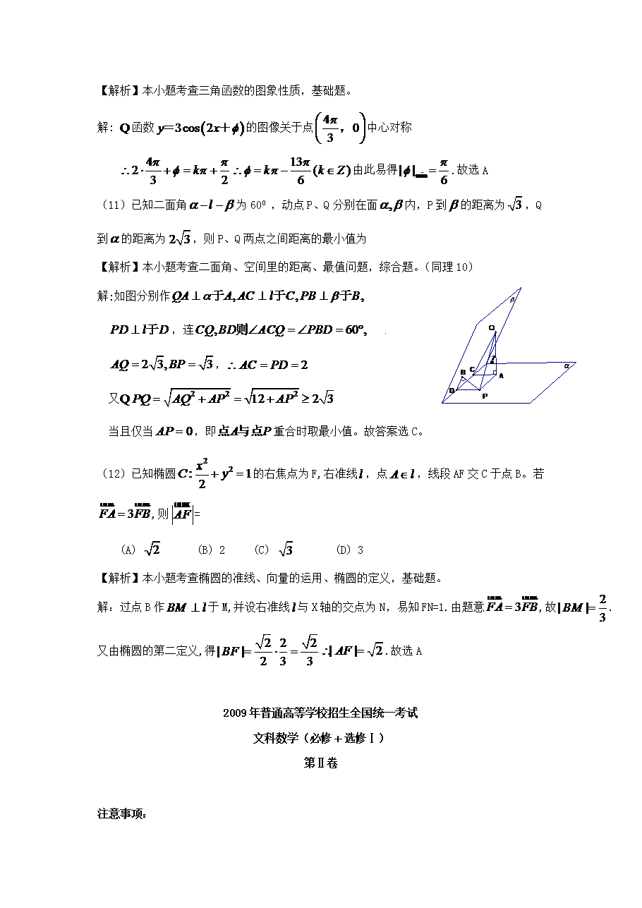 【文档名称】 2009年河南高考文科数学试题及答案(Word版).doc