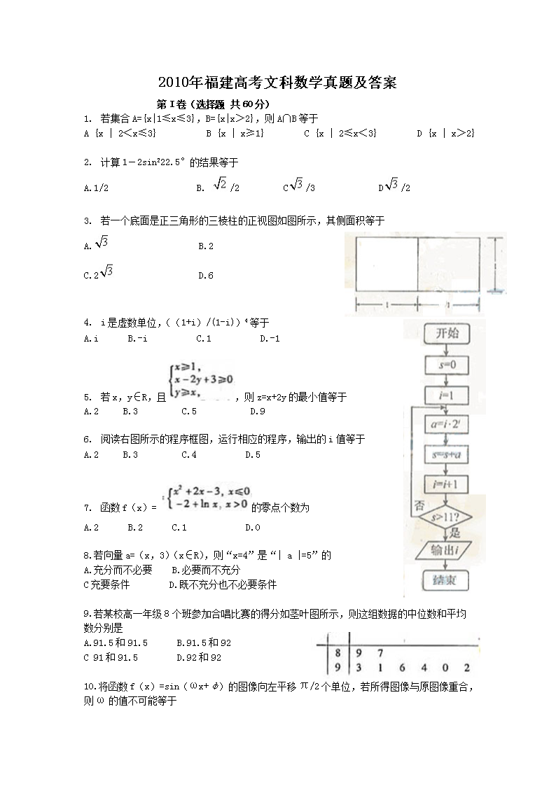 【文档名称】 2010年福建高考文科数学真题及答案(Word版).doc