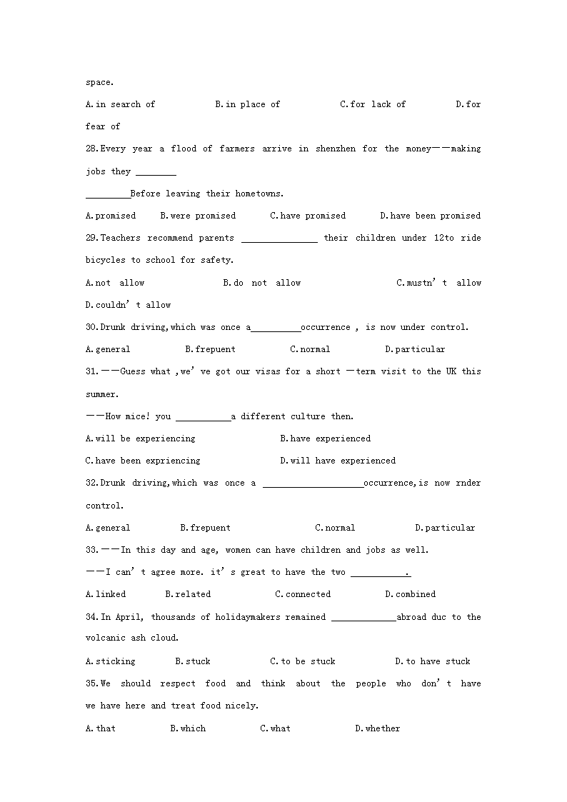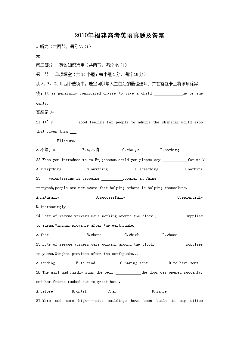 【文档名称】 2010年福建高考英语真题及答案(Word版).doc