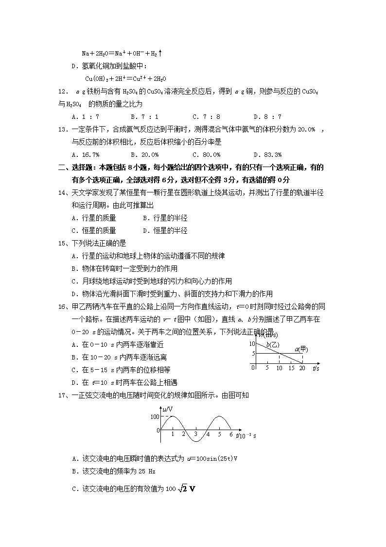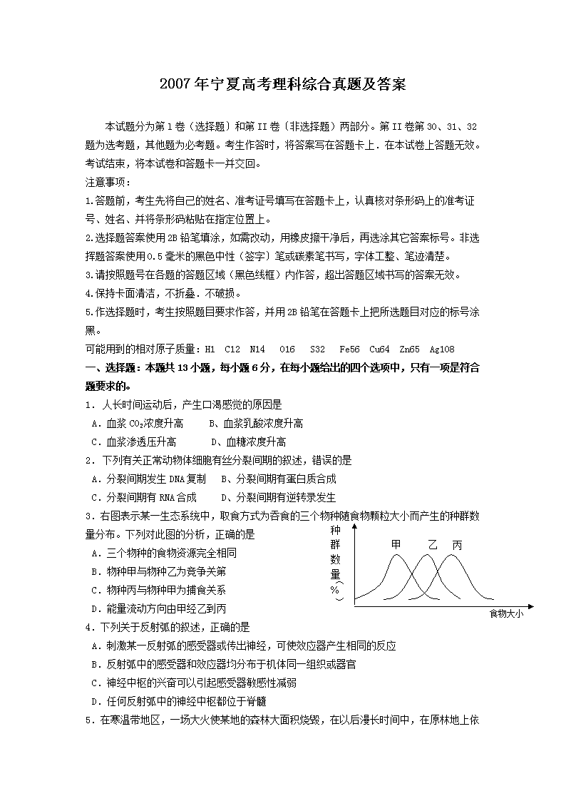 【文档预览】 无忧考网整理发布2007年宁夏高考理科综合真题及答案(Word版),前五页预览如下: