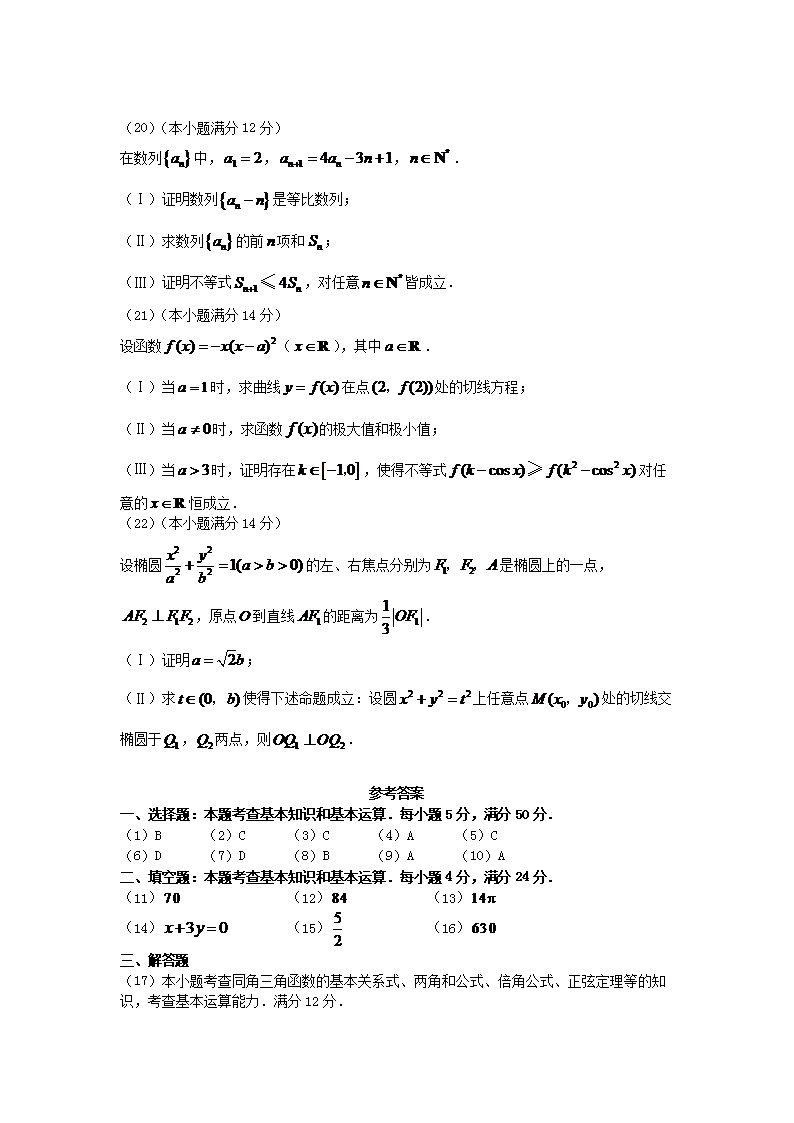 【文档预览】 无忧考网整理发布2007年天津高考文科数学真题及答案(Word版),前五页预览如下: