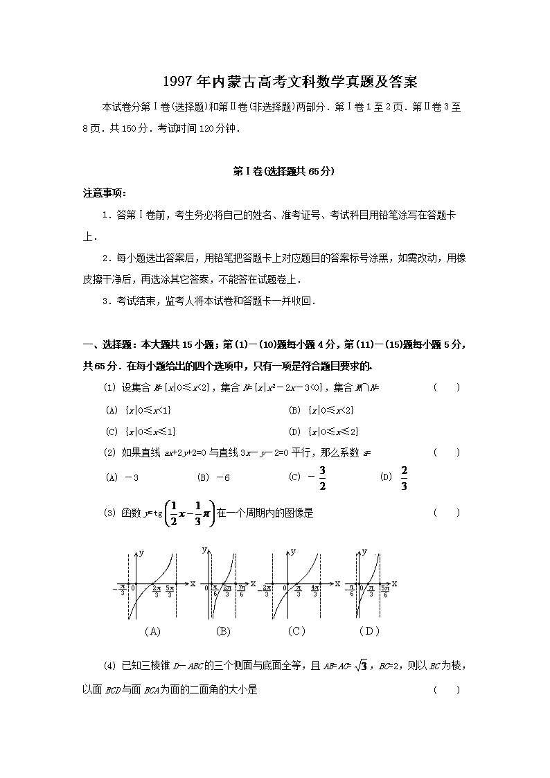 【文档名称】 1997年内蒙古高考文科数学真题及答案(Word版).doc