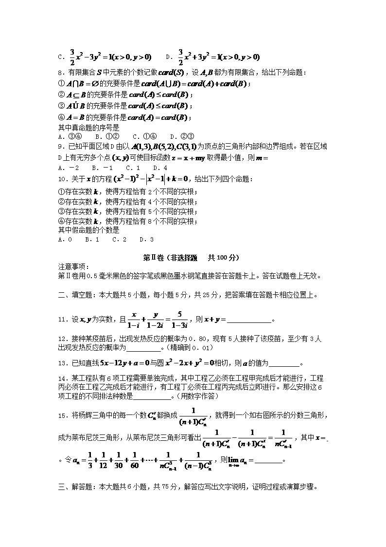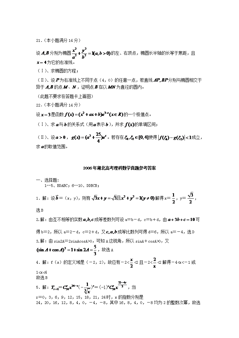 【文档预览】 无忧考网整理发布2006年湖北高考理科数学真题及答案(Word版),前五页预览如下: