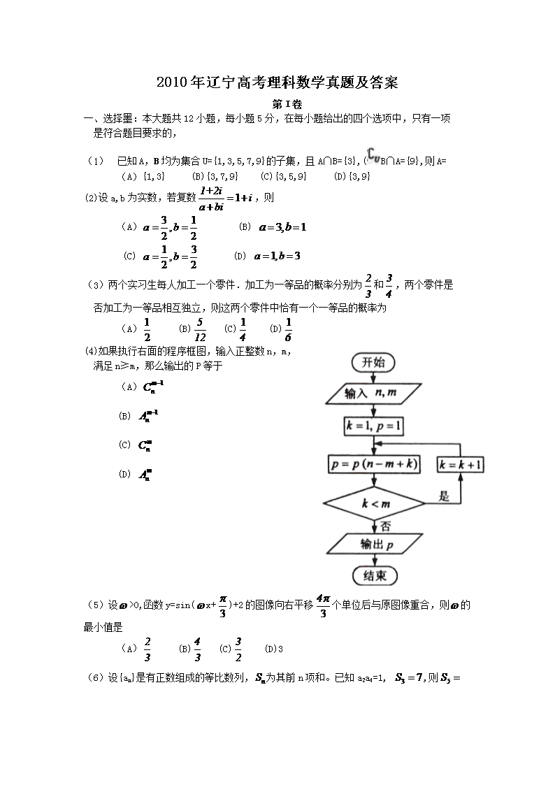 【文档名称】 2010年辽宁高考理科数学真题及答案(Word版).doc