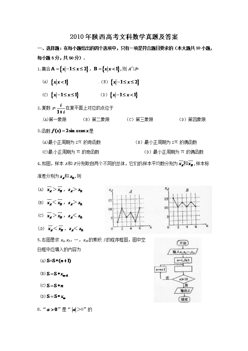 【文档名称】 2010年陕西高考文科数学真题及答案(Word版).doc