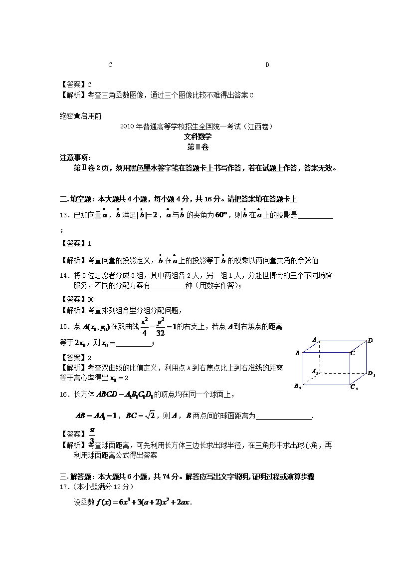 【文档名称】 2010年江西高考文科数学真题及答案(Word版).doc