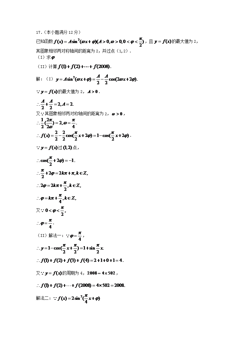 【文档预览】 无忧考网整理发布2006年山东高考理科数学真题及答案(Word版),前五页预览如下: