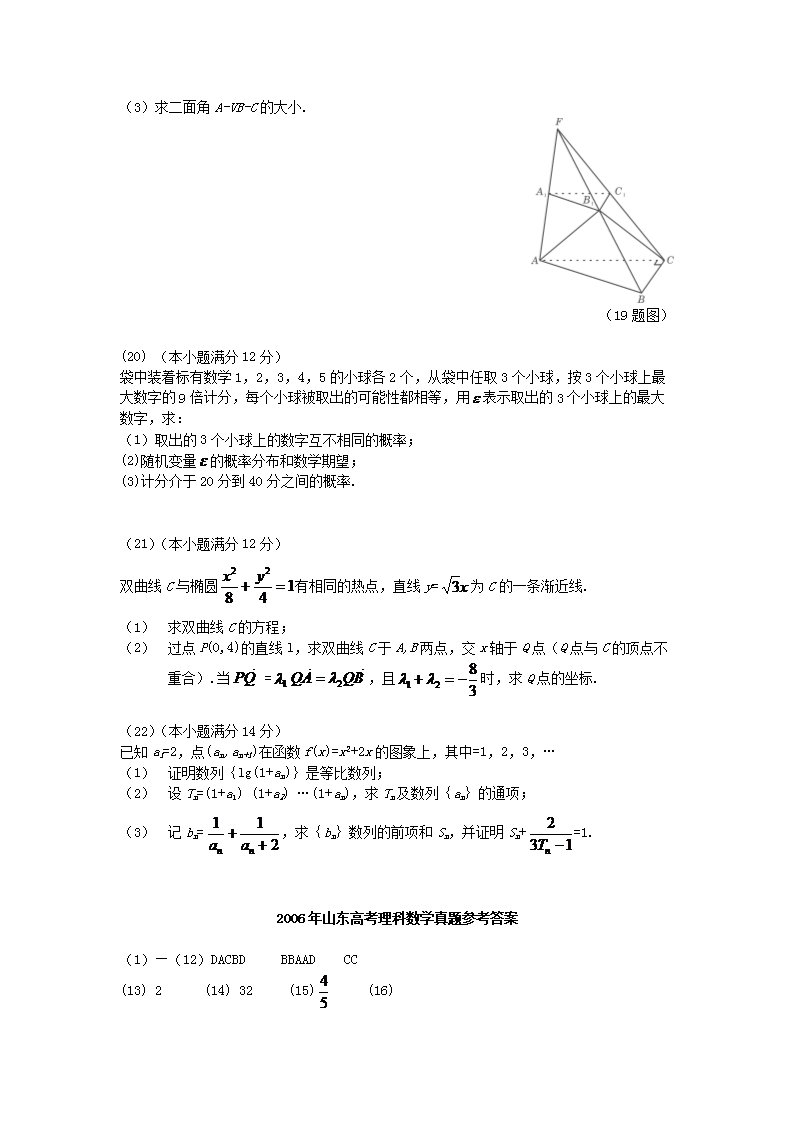 【文档名称】 2006年山东高考理科数学真题及答案(Word版).doc