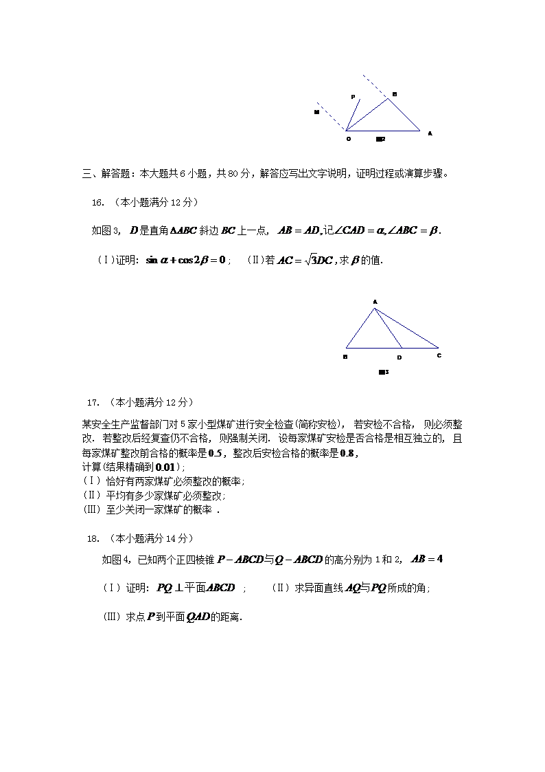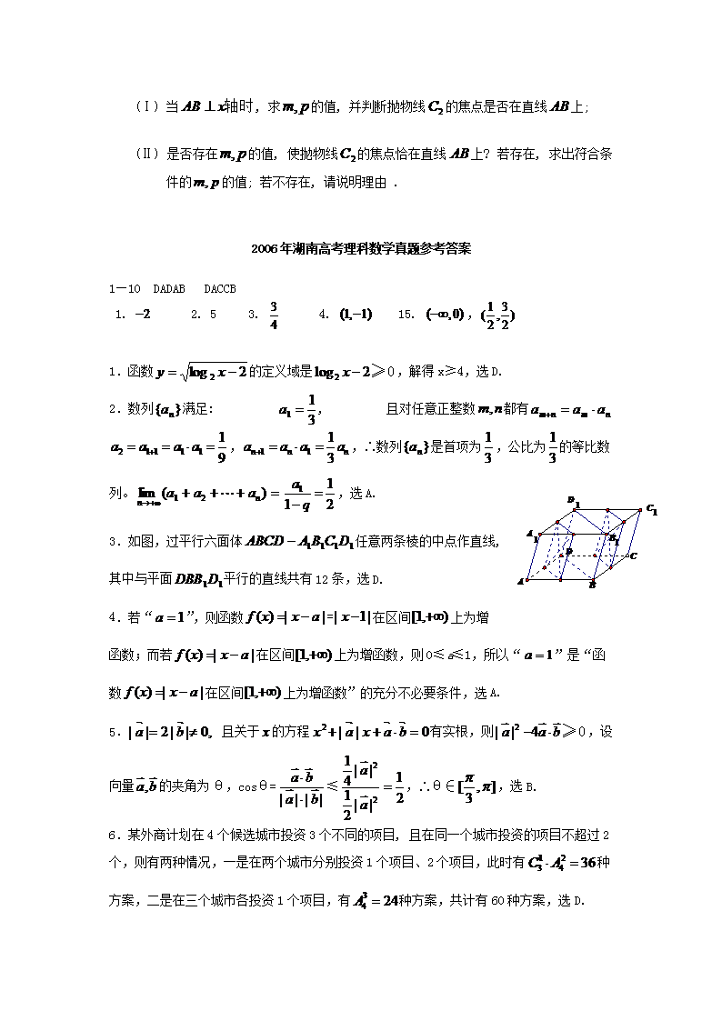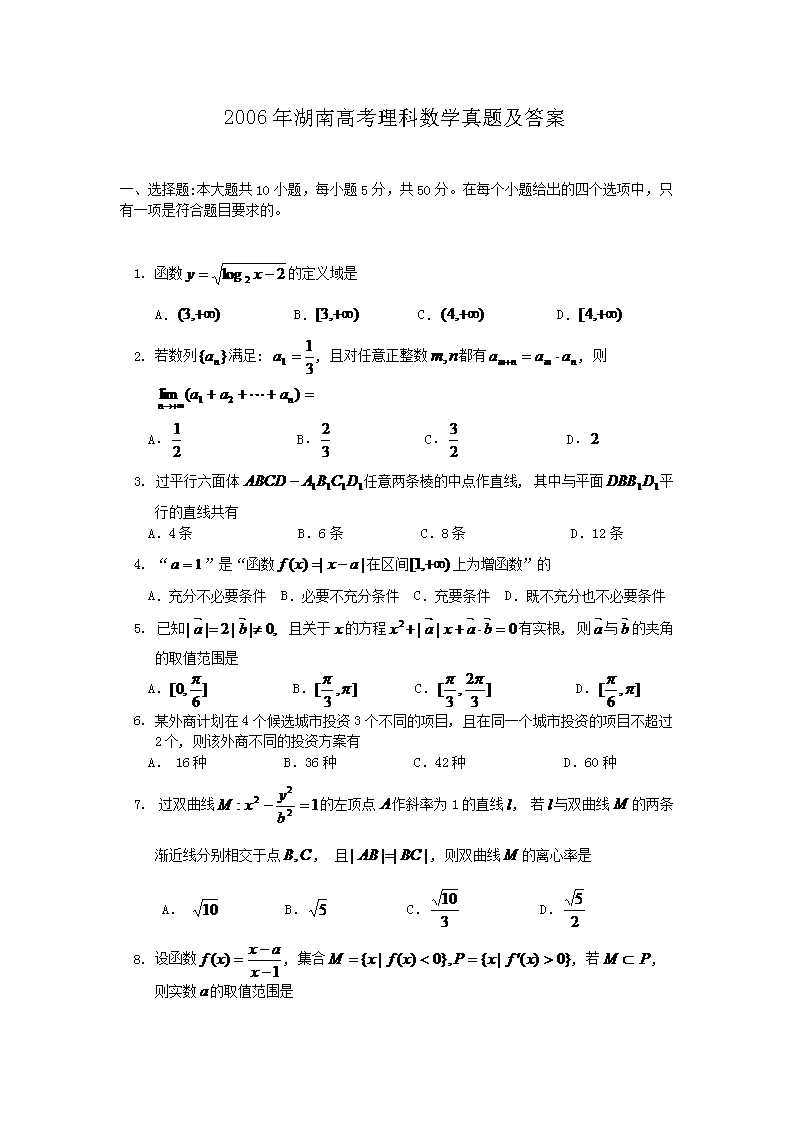 【文档名称】 2006年湖南高考理科数学真题及答案(Word版).doc