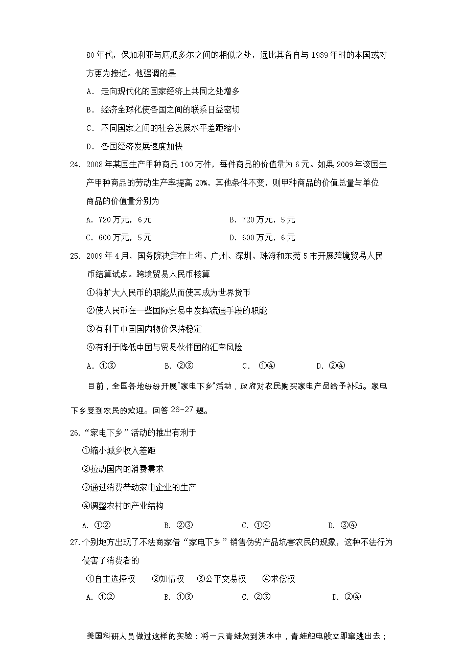【文档名称】 2009年新疆高考文综试题及答案(Word版).doc