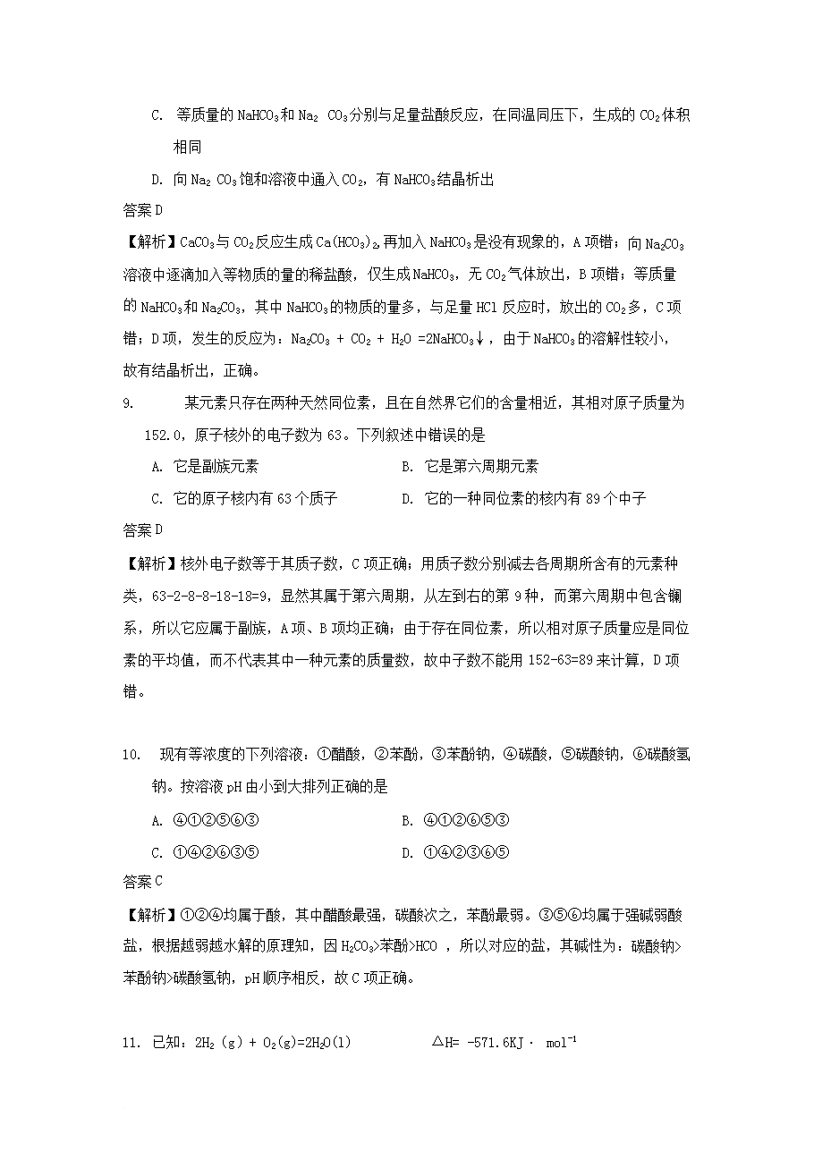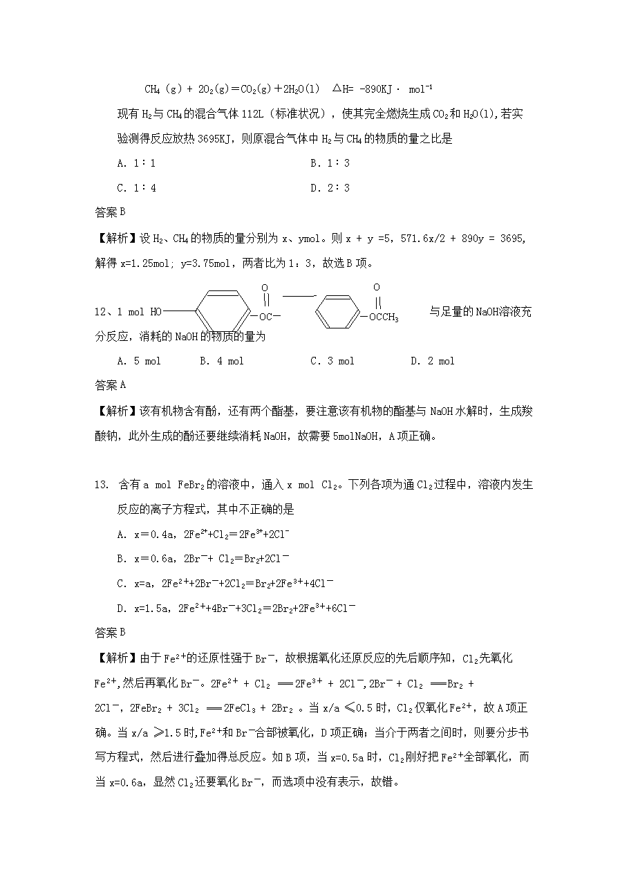 【文档名称】 2009年云南高考理综试题及答案(Word版).doc