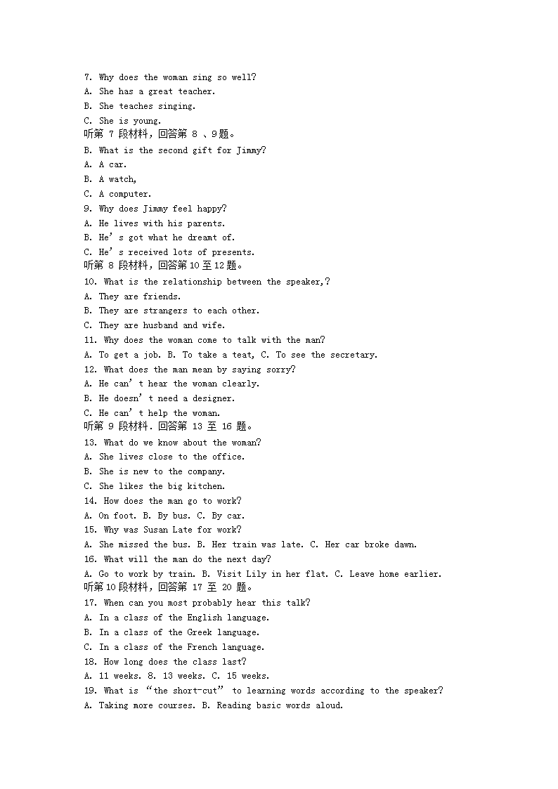 【文档名称】 2007年河南高考英语真题及答案(Word版).doc