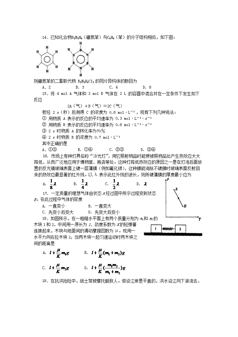 【文档预览】 无忧考网整理发布2001年贵州高考理综真题及答案(Word版),前五页预览如下: