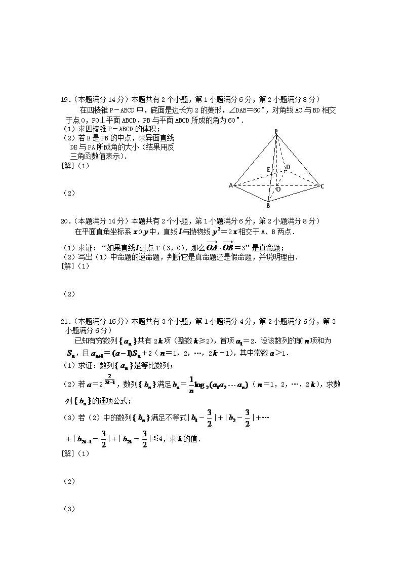 【文档预览】 无忧考网整理发布2006年上海高考理科数学真题及答案(Word版),前五页预览如下: