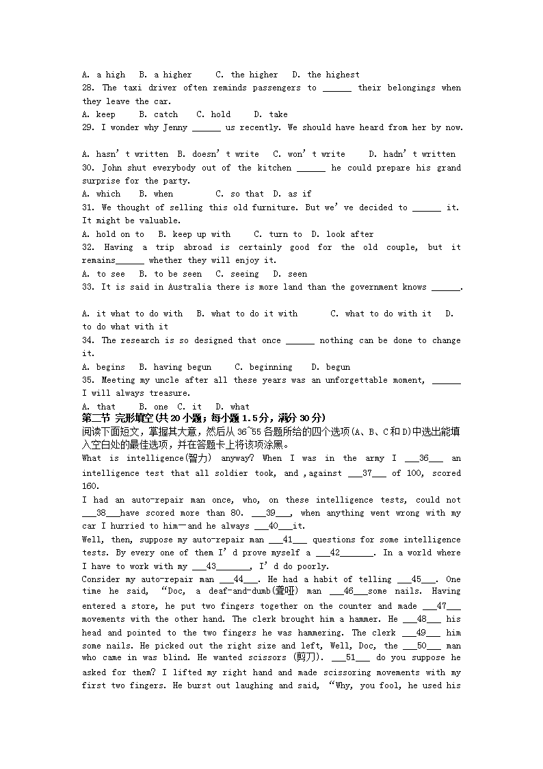 【文档名称】 2002年云南高考英语真题及答案(Word版).doc