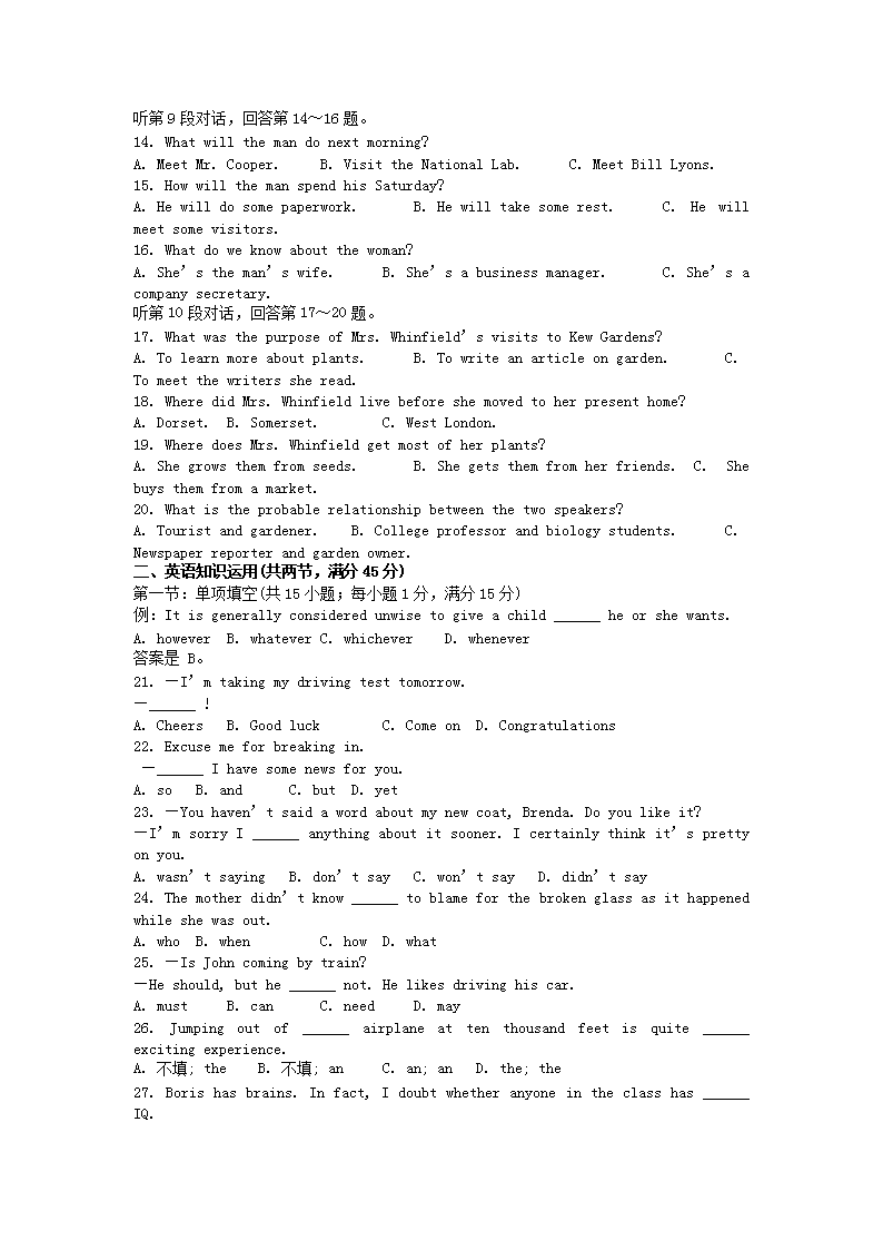 【文档预览】 无忧考网整理发布2002年云南高考英语真题及答案(Word版),前五页预览如下: