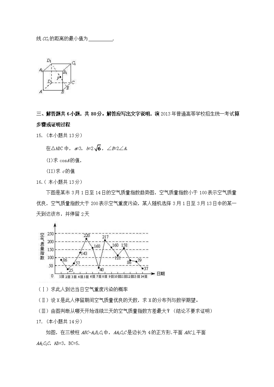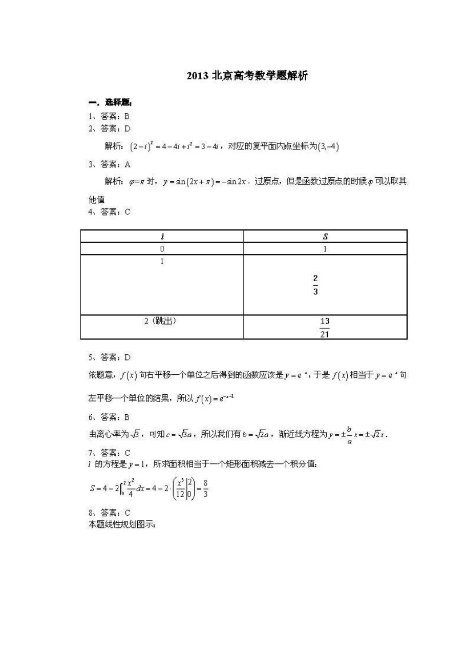 【文档名称】 2013年北京高考理科数学试题及答案(Word版).doc