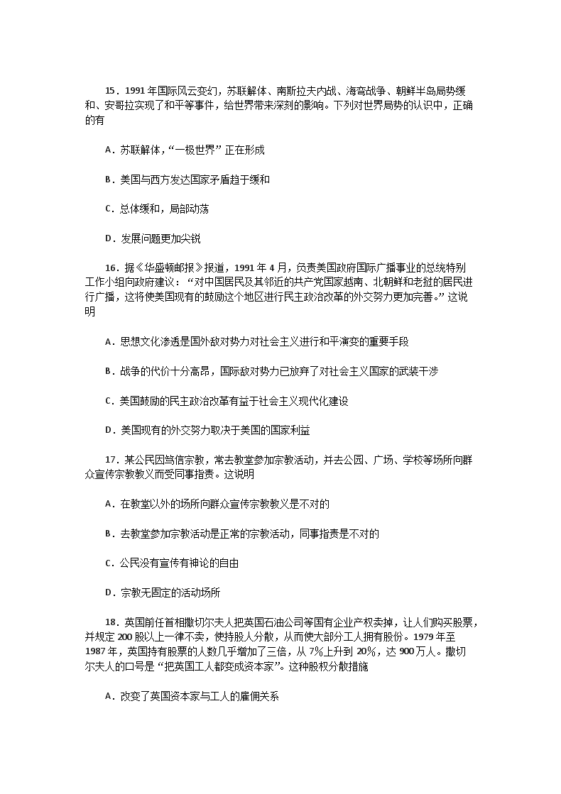 【文档预览】 无忧考网整理发布1992年湖北高考理科政治真题及答案(Word版),前五页预览如下:
