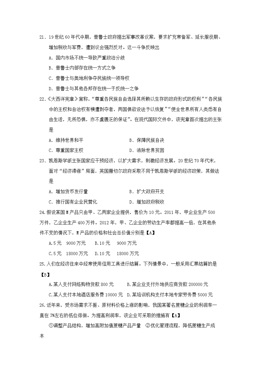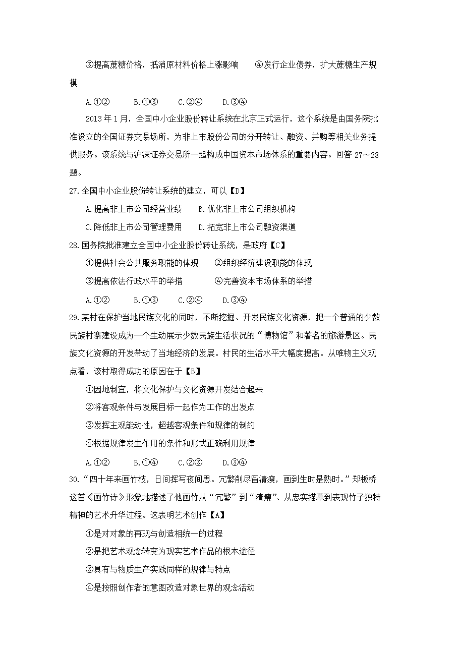 【文档名称】 2013年广西高考文综试题及答案(Word版).doc