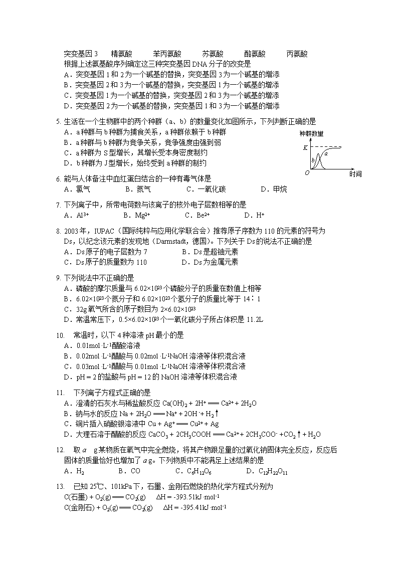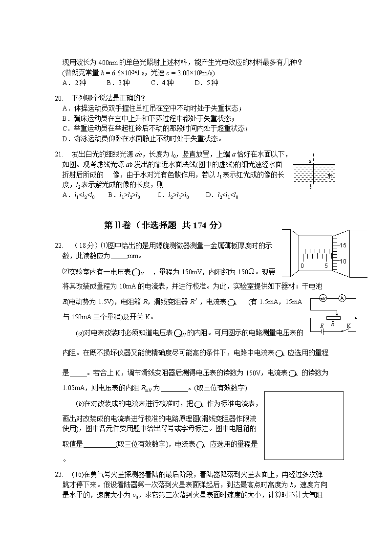 【文档名称】 2004年安徽高考理科综合真题及答案(Word版).doc