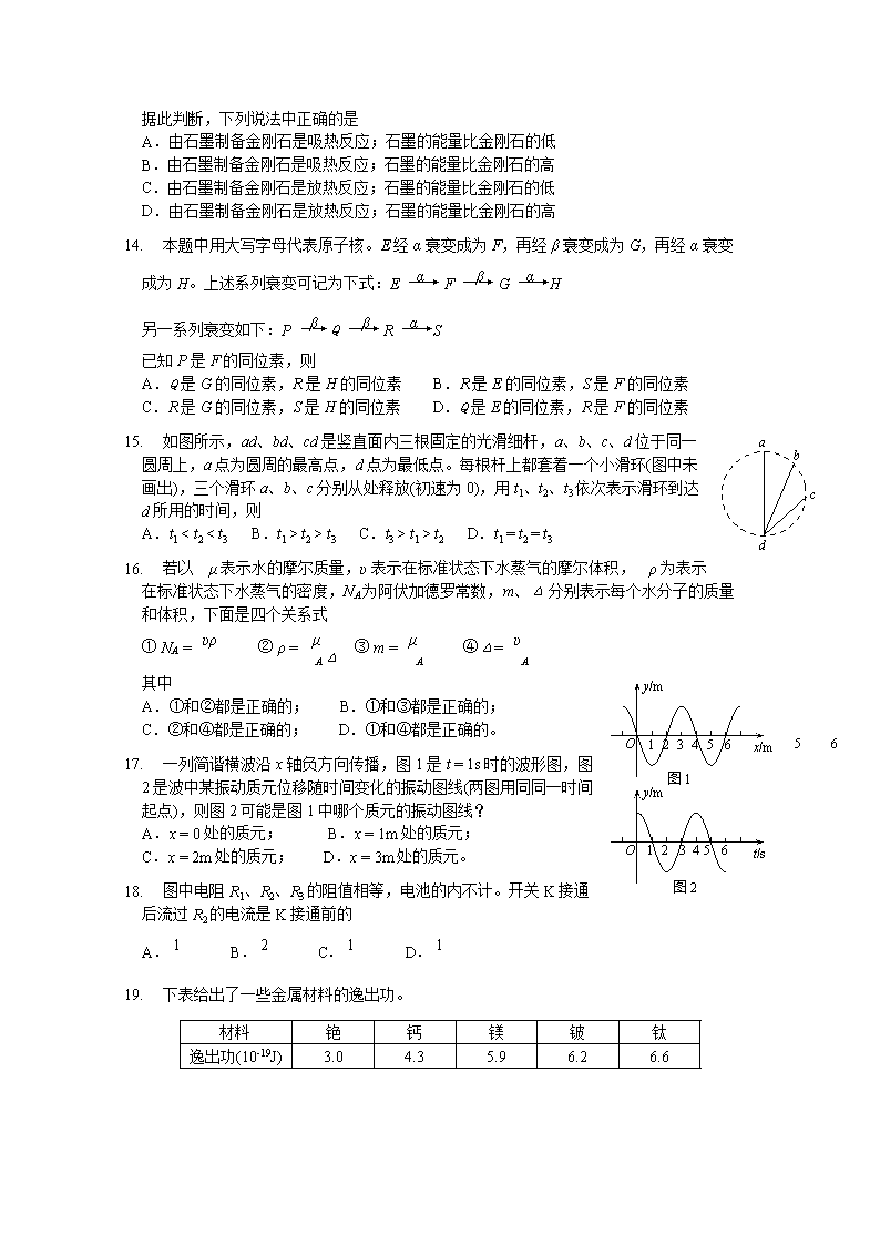 【文档名称】 2004年福建高考理科综合真题及答案(Word版).doc