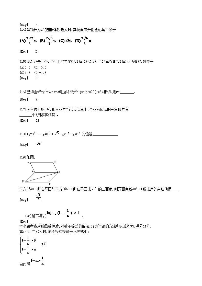 【文档名称】 1996年辽宁高考理科数学真题及答案(Word版).doc