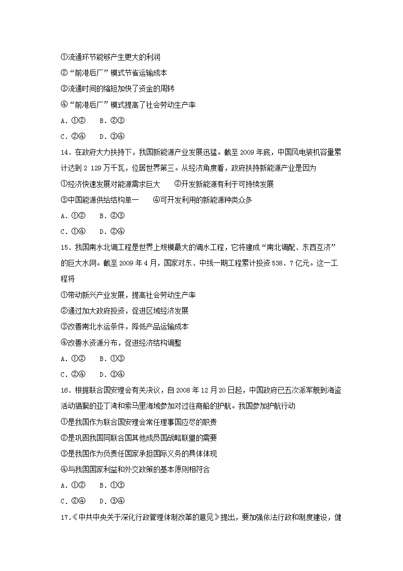 【文档预览】 无忧考网整理发布2010年新课标全国卷高考文科综合真题及答案(Word版),前五页预览如下: