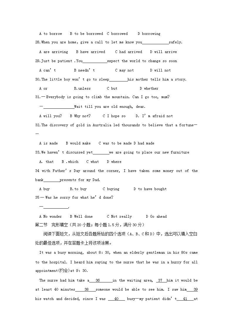 【文档预览】 无忧考网整理发布2010年新课标全国卷高考英语真题及答案(Word版),前五页预览如下: