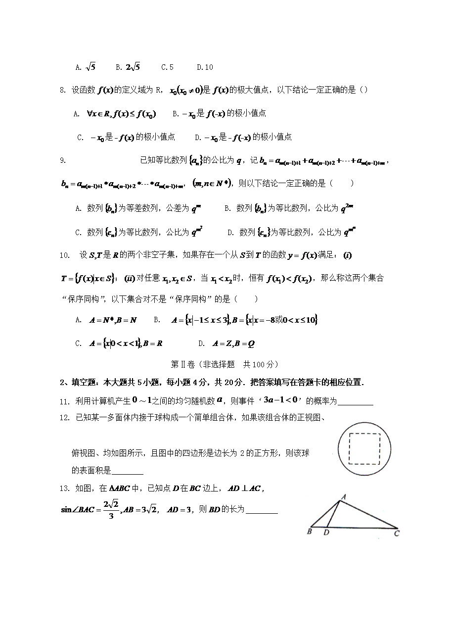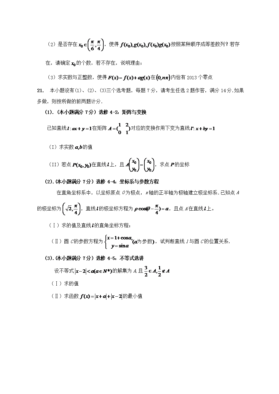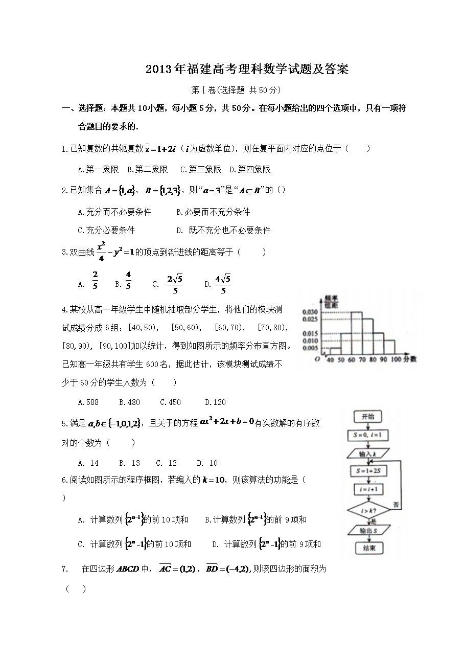 【文档名称】 2013年福建高考理科数学试题及答案(Word版).doc