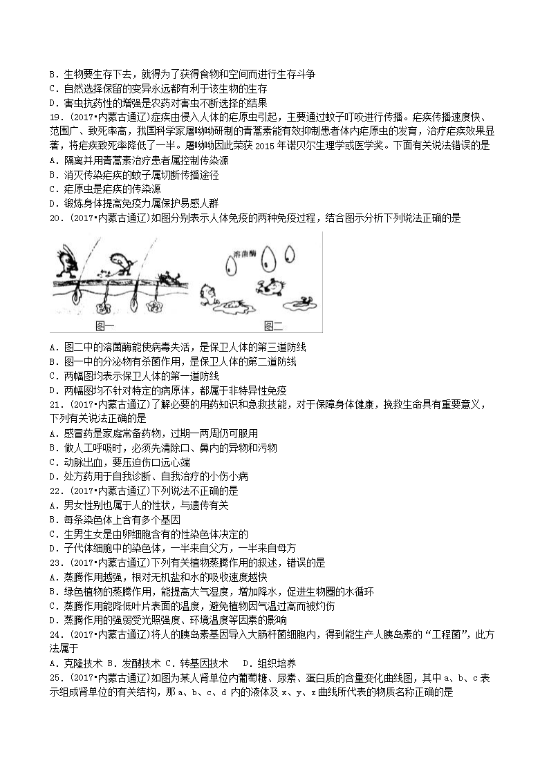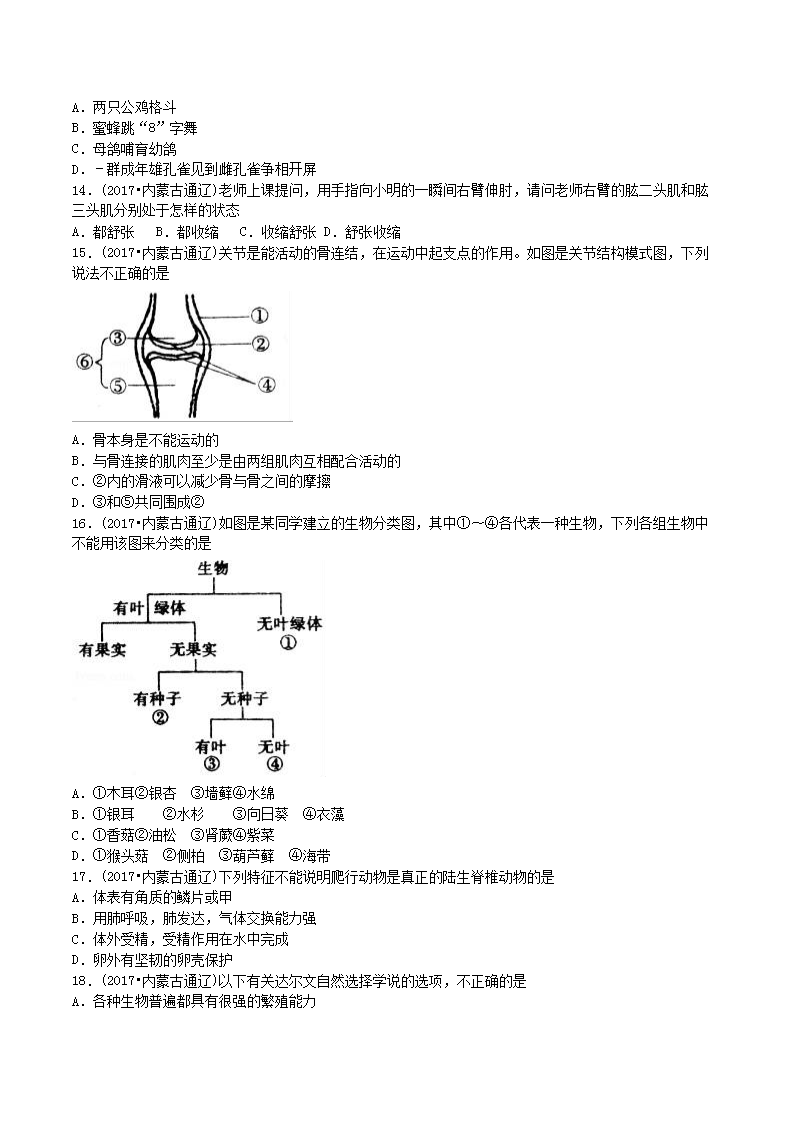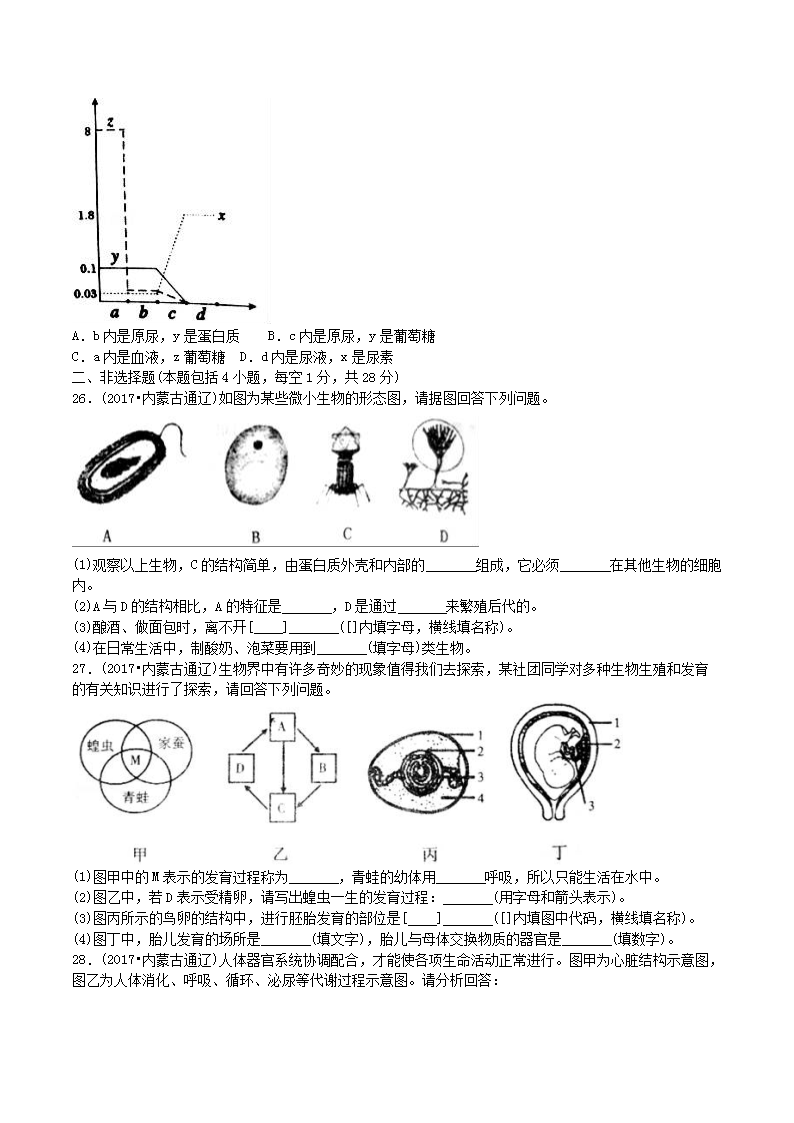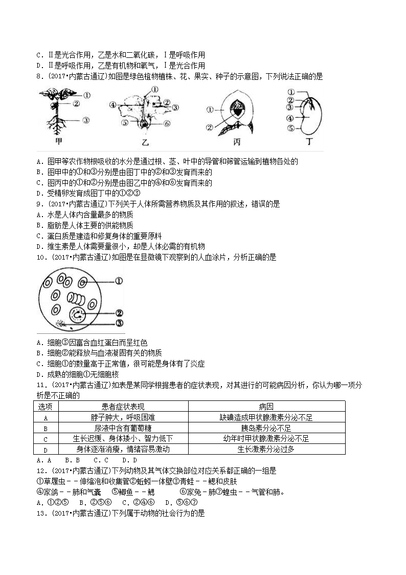 【文档名称】 2017年内蒙古通辽市中考生物真题及答案(Word版).doc