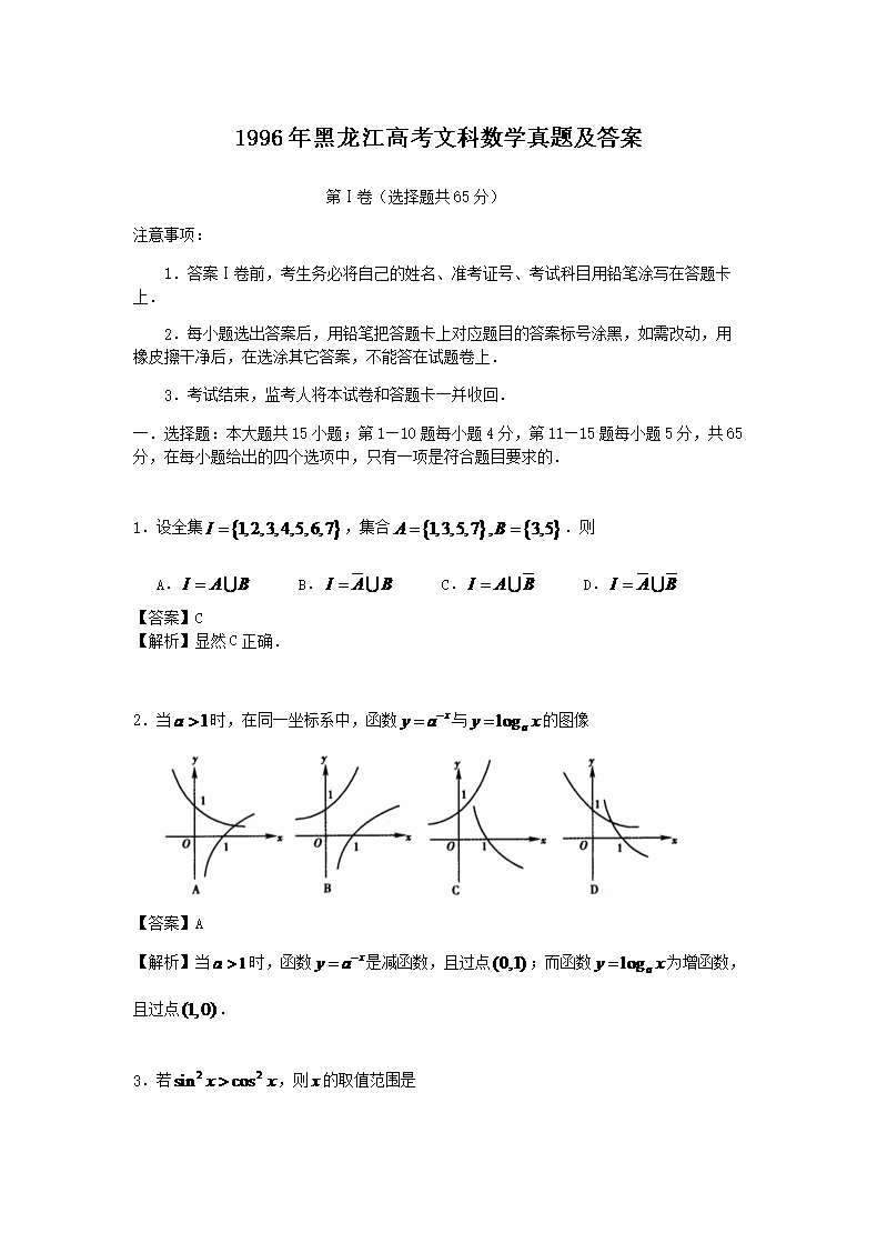 【文档名称】 1996年黑龙江高考文科数学真题及答案(Word版).doc