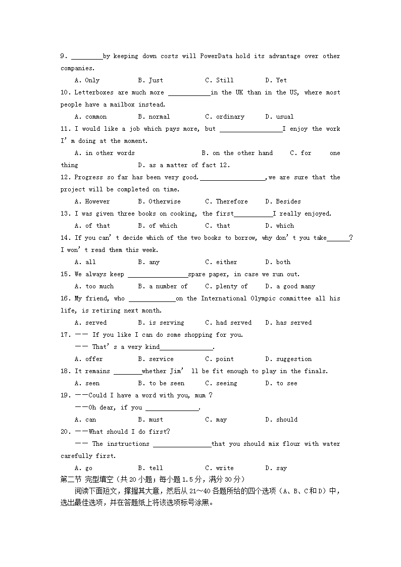 【文档预览】 无忧考网整理发布2006年浙江高考英语真题及答案(Word版),前五页预览如下: