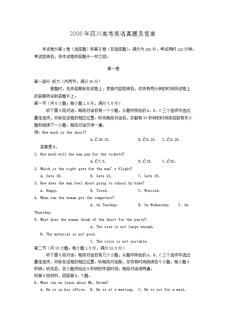 【文档名称】 2006年四川高考英语真题及答案(Word版).doc