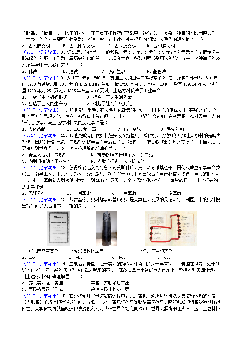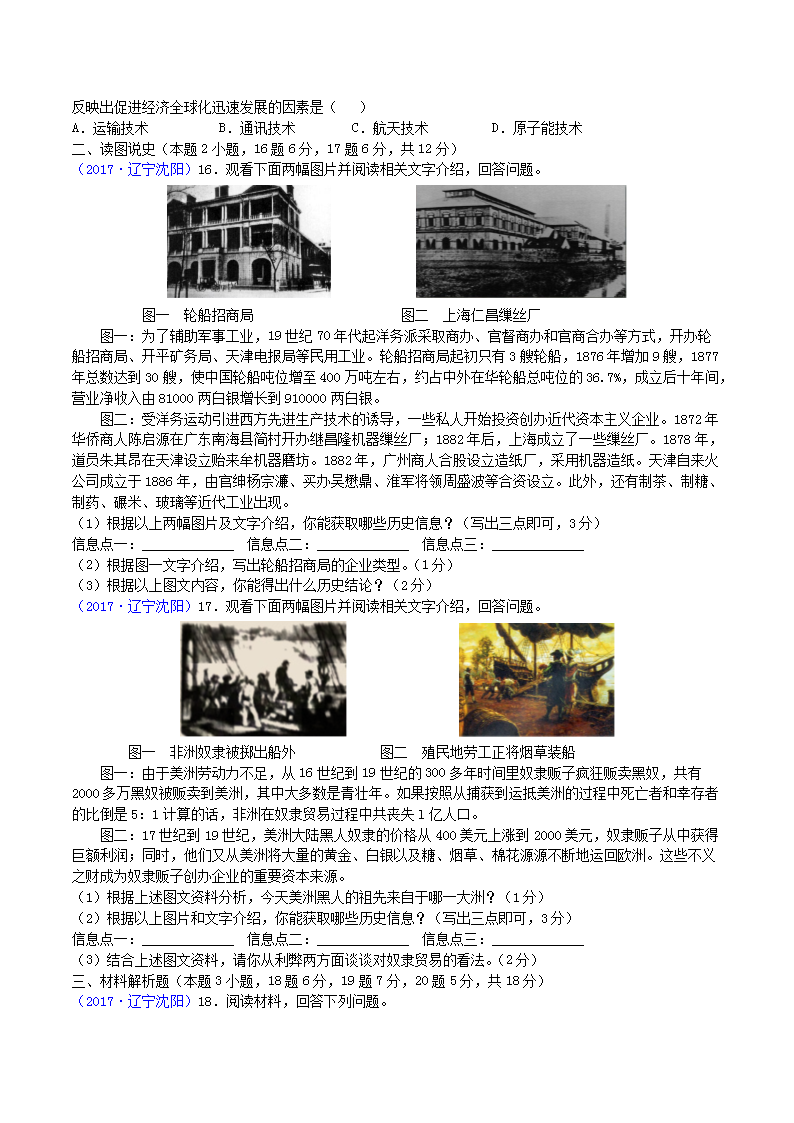 【文档名称】 2017年辽宁省沈阳市中考历史真题及答案(Word版).doc