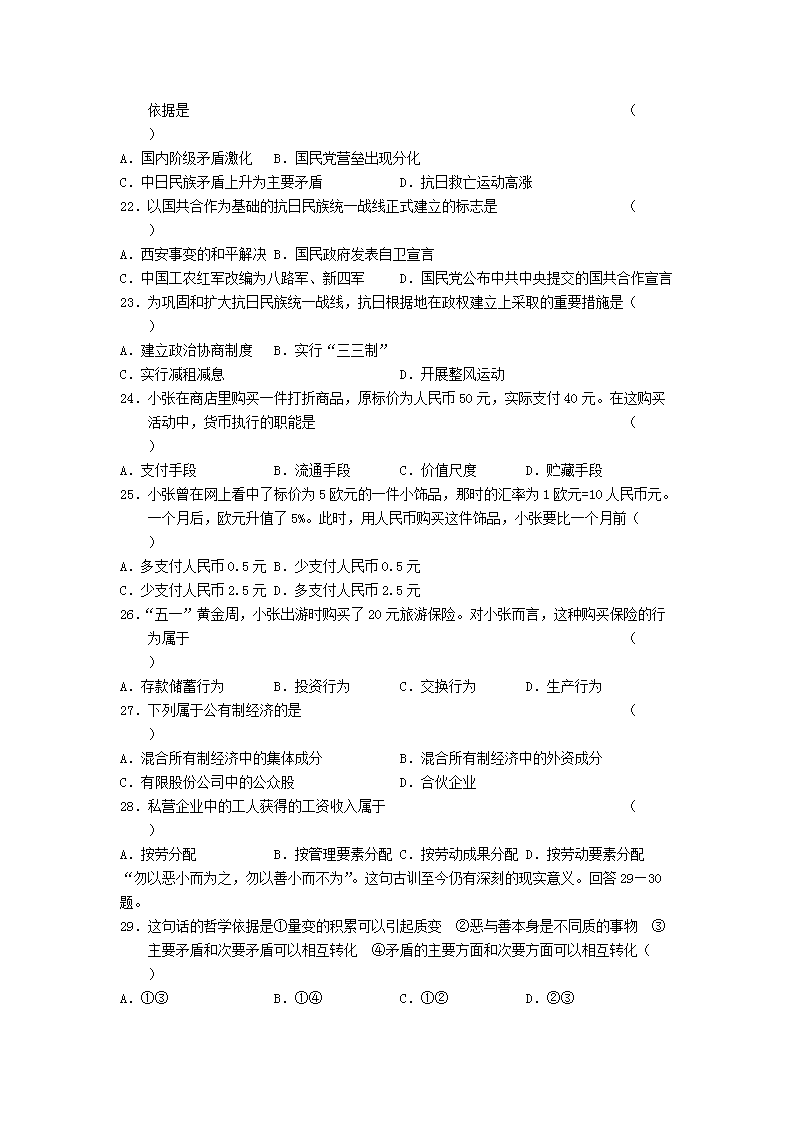 【文档预览】 无忧考网整理发布2005年甘肃高考文科综合真题及答案(Word版),前五页预览如下: