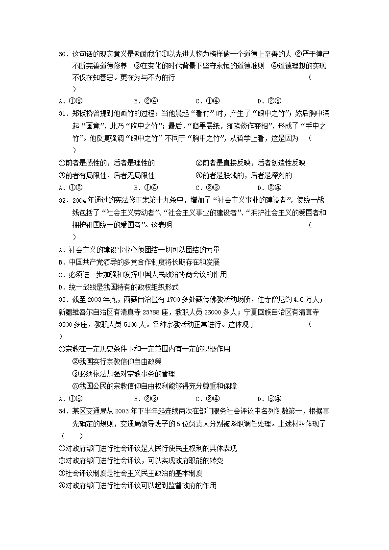 【文档名称】 2005年贵州高考文科综合真题及答案(Word版).doc
