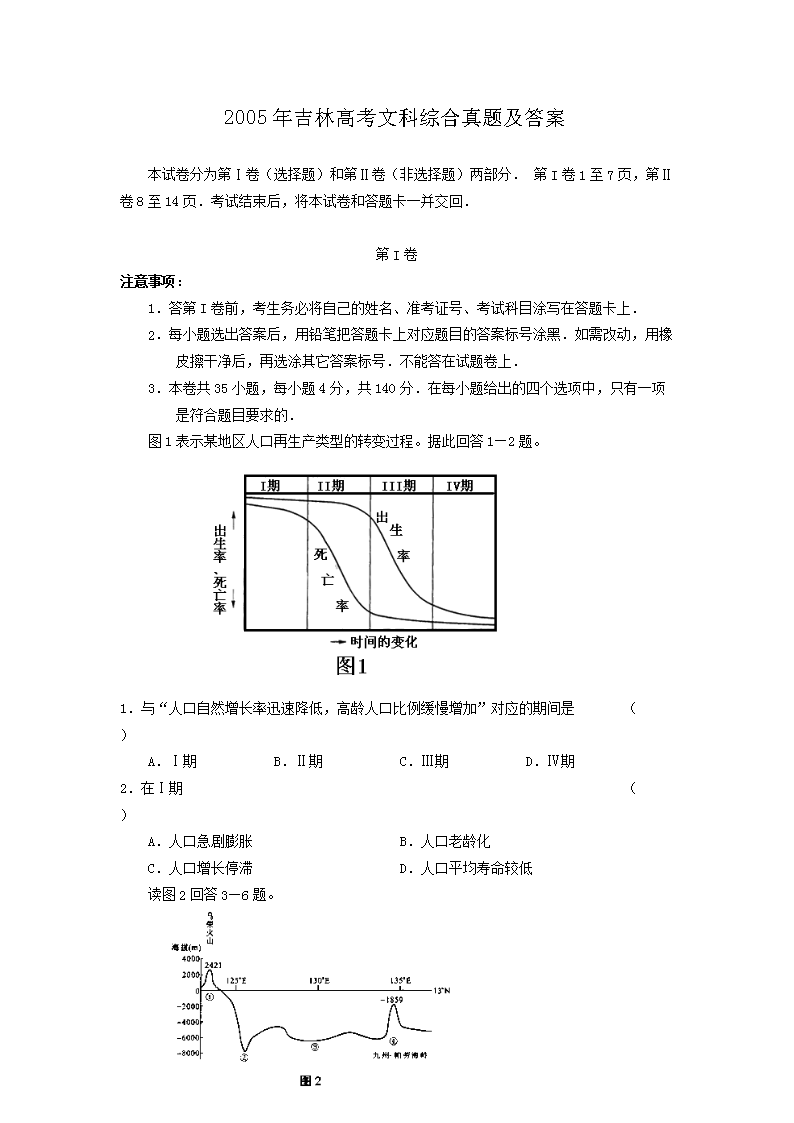 【文档名称】 2005年吉林高考文科综合真题及答案(Word版).doc