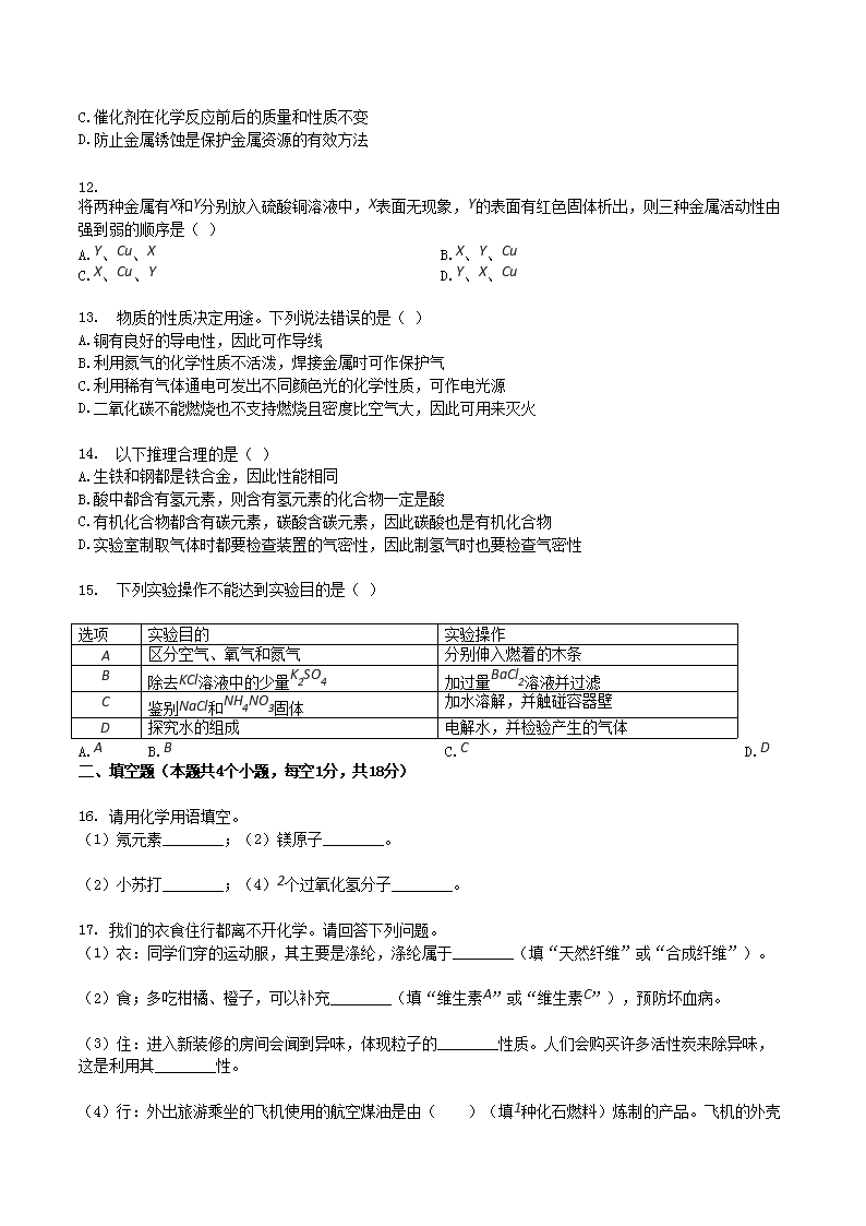【文档名称】 2017年辽宁省抚顺市中考化学真题及答案(Word版).doc