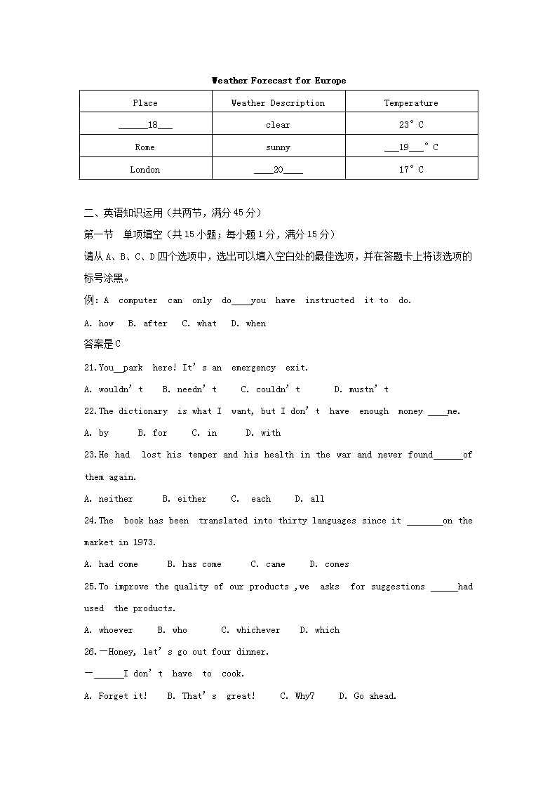 【文档预览】 无忧考网整理发布2010年重庆高考英语真题及答案(Word版),前五页预览如下: