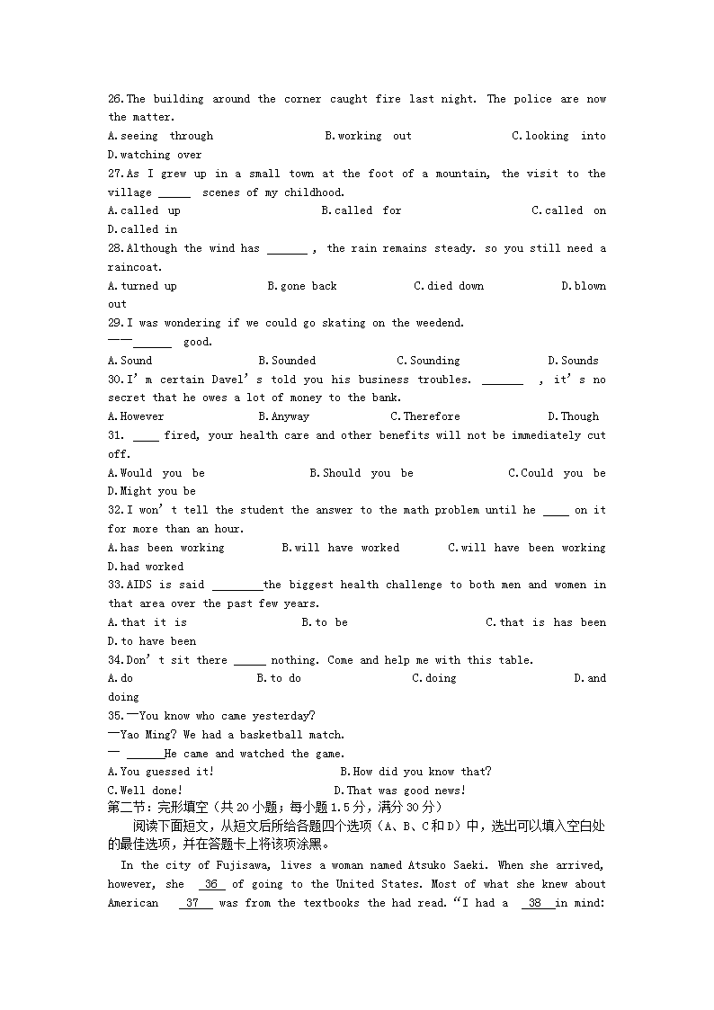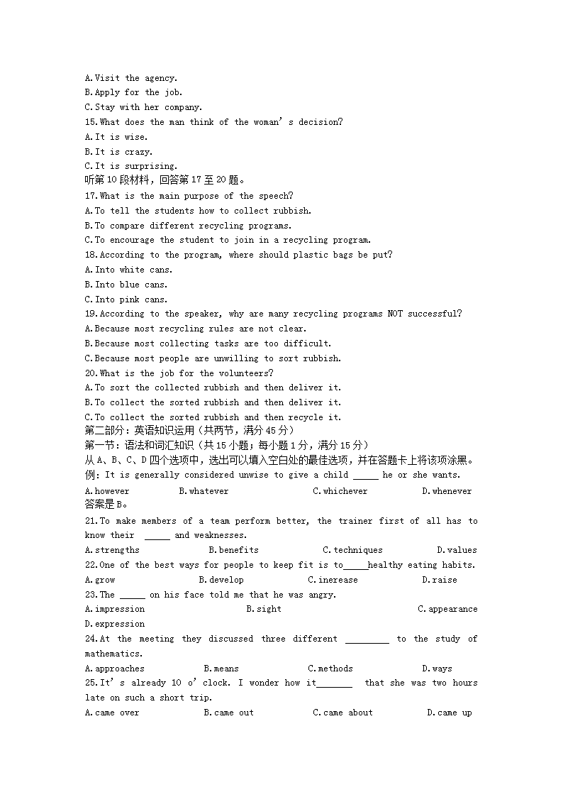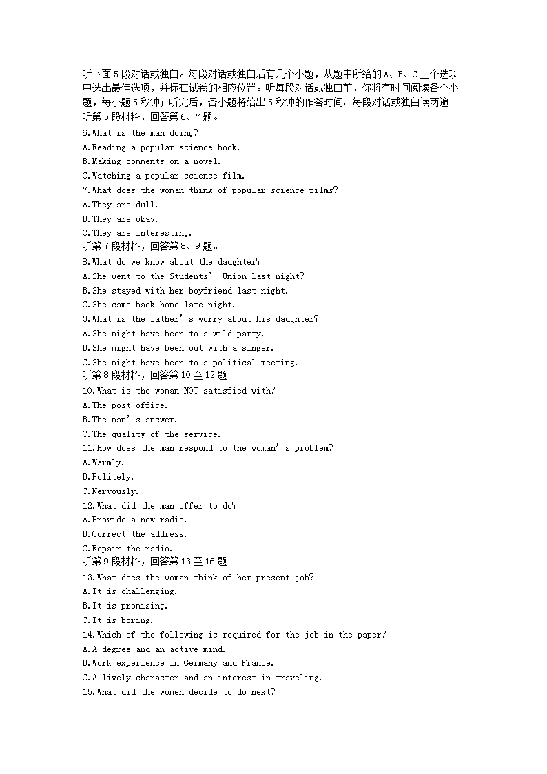 【文档预览】 无忧考网整理发布2006年湖北高考英语真题及答案(Word版),前五页预览如下: