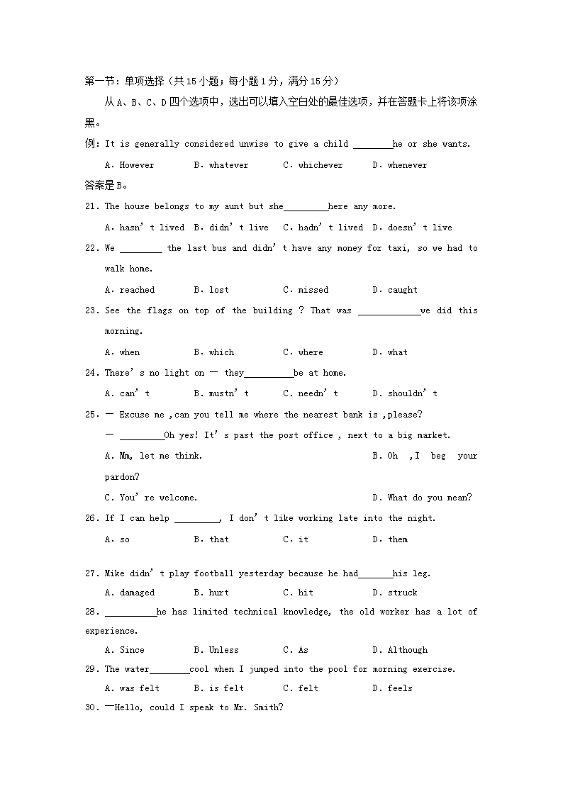 【文档预览】 无忧考网整理发布2006年河北高考英语真题及答案(Word版),前五页预览如下: