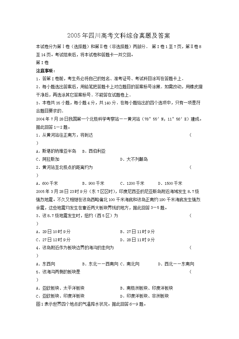 【文档名称】 2005年四川高考文科综合真题及答案(Word版).doc