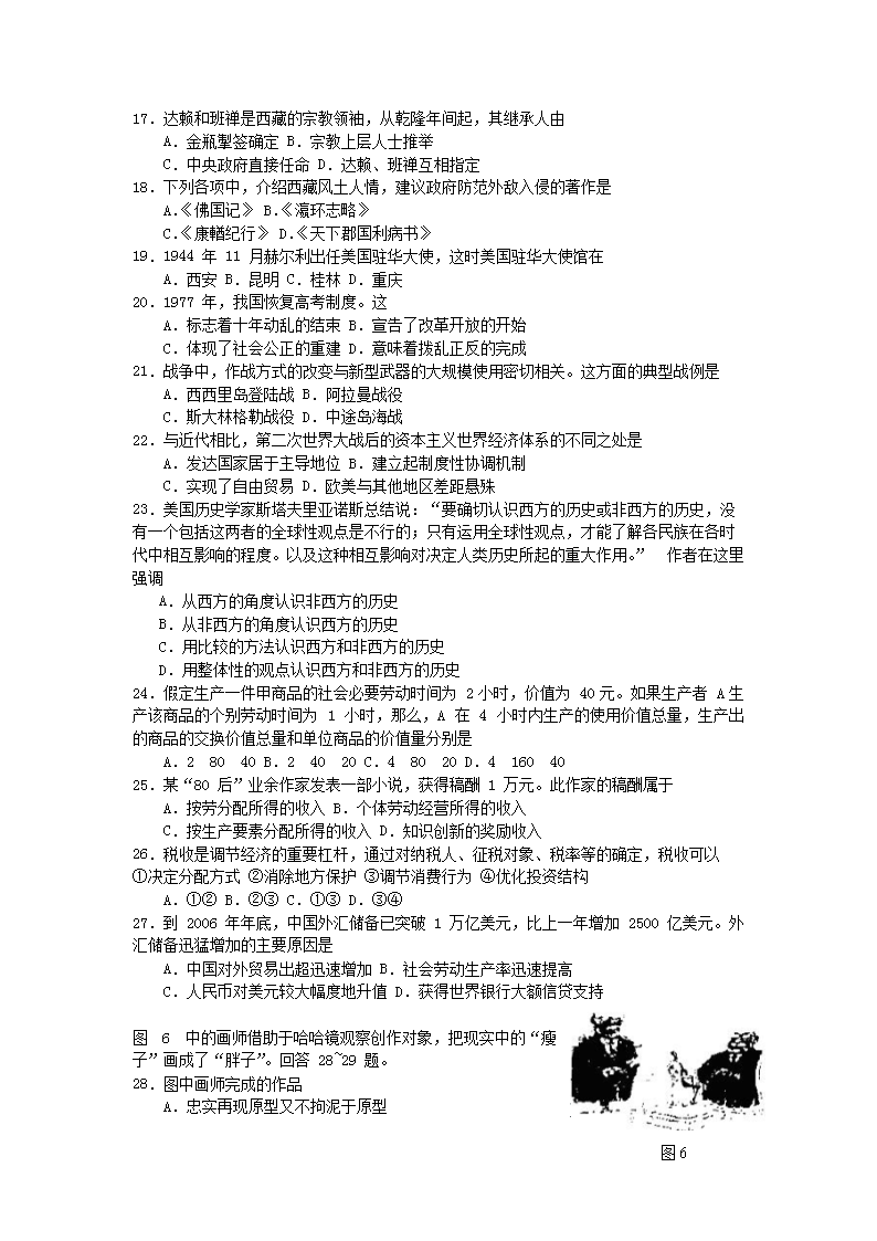【文档名称】 2007年内蒙古高考文科综合真题及答案(Word版).doc