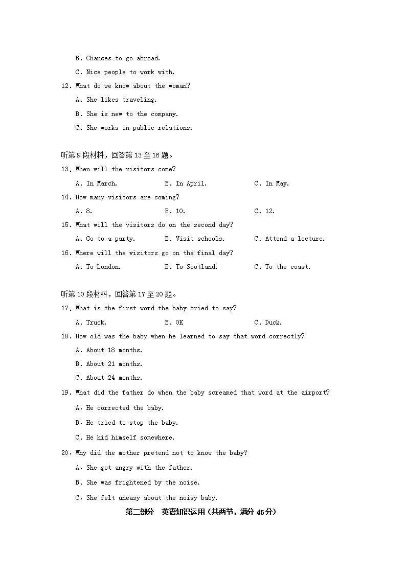【文档预览】 无忧考网整理发布2006年青海高考英语真题及答案(Word版),前五页预览如下: