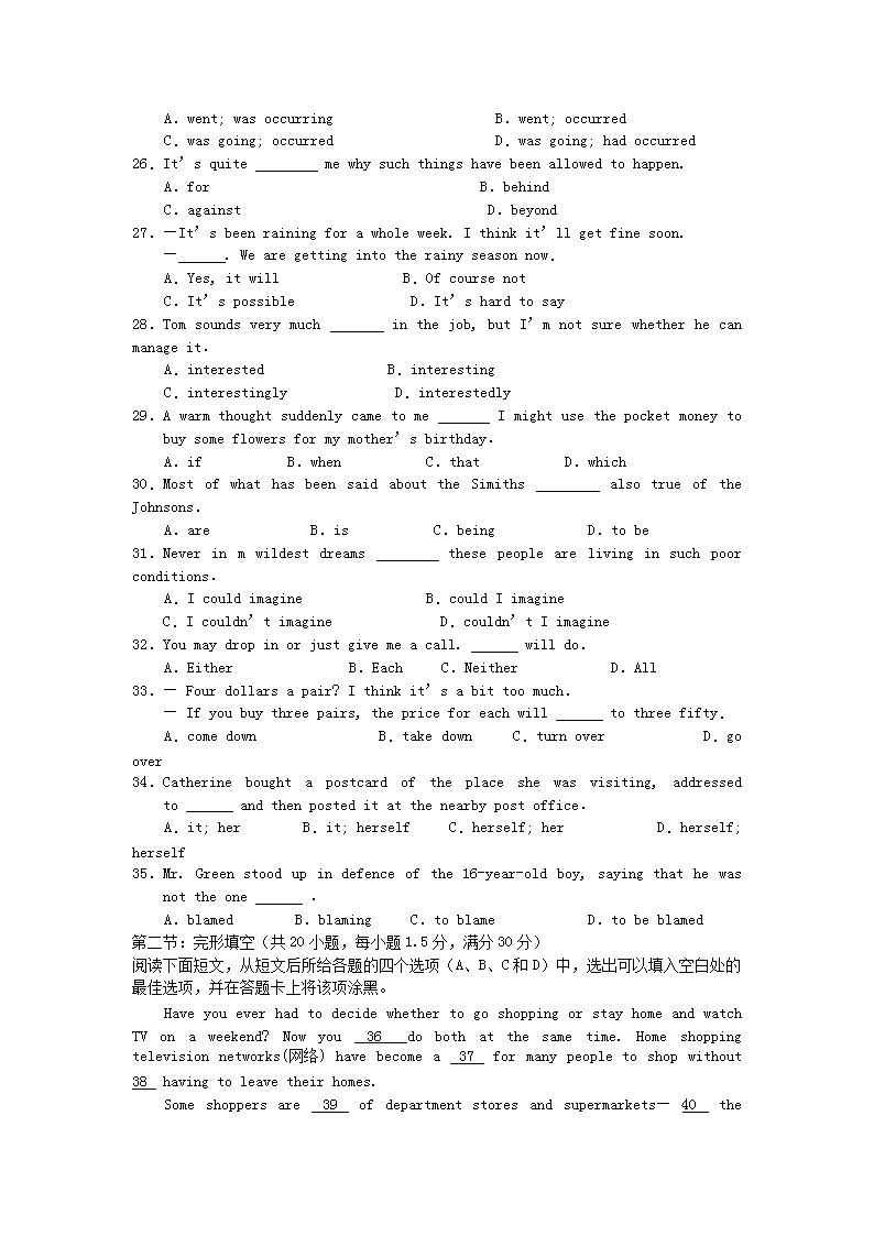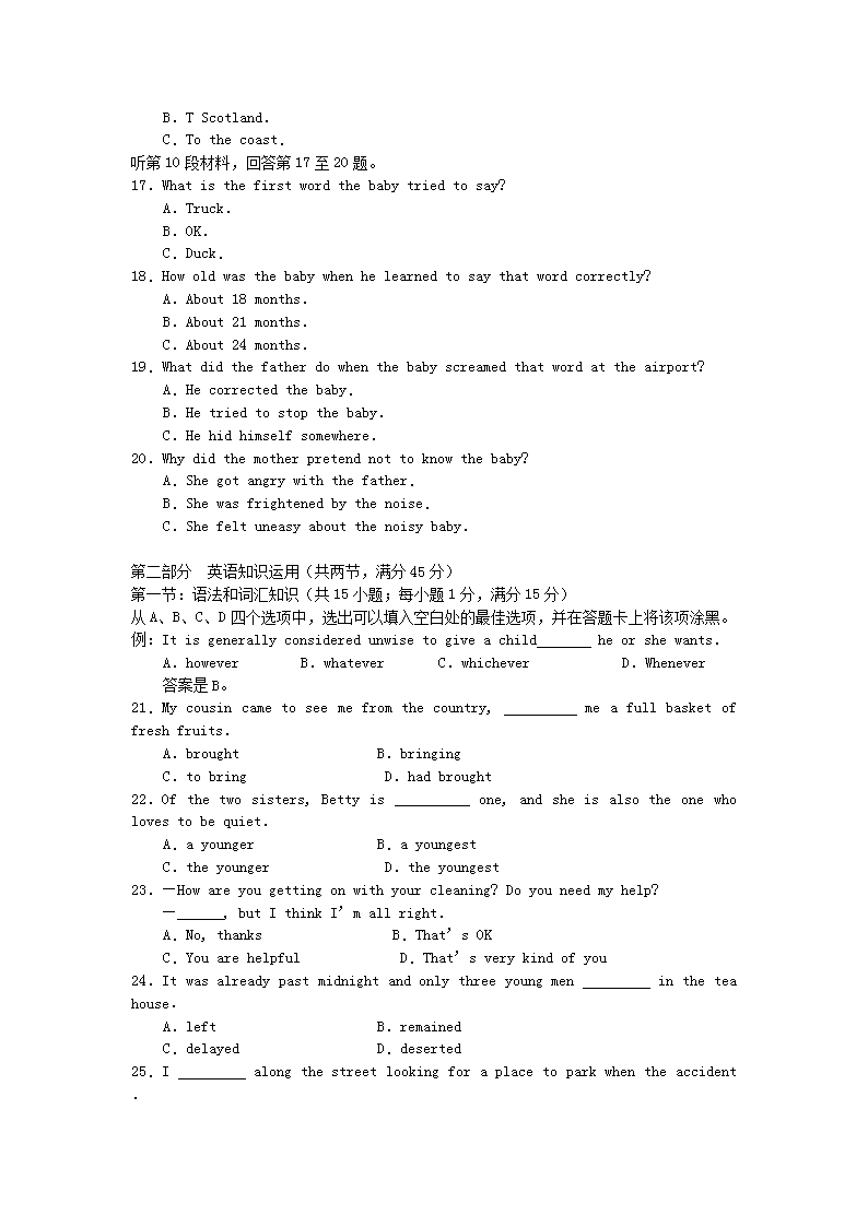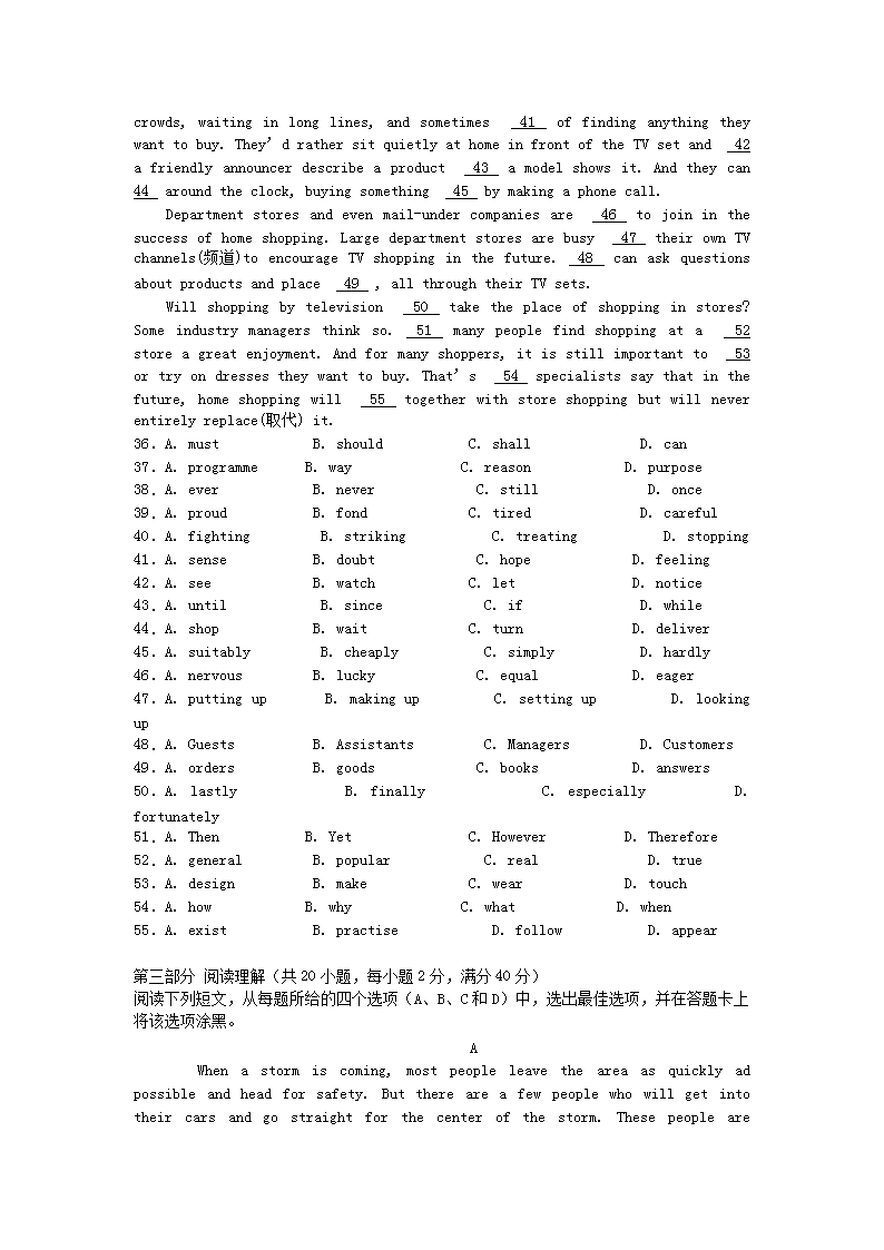 【文档预览】 无忧考网整理发布2006年安徽高考英语真题及答案(Word版),前五页预览如下: