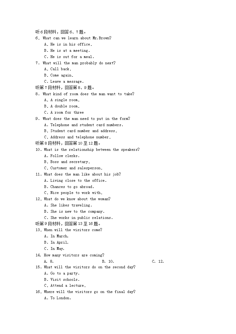 【文档名称】 2006年安徽高考英语真题及答案(Word版).doc
