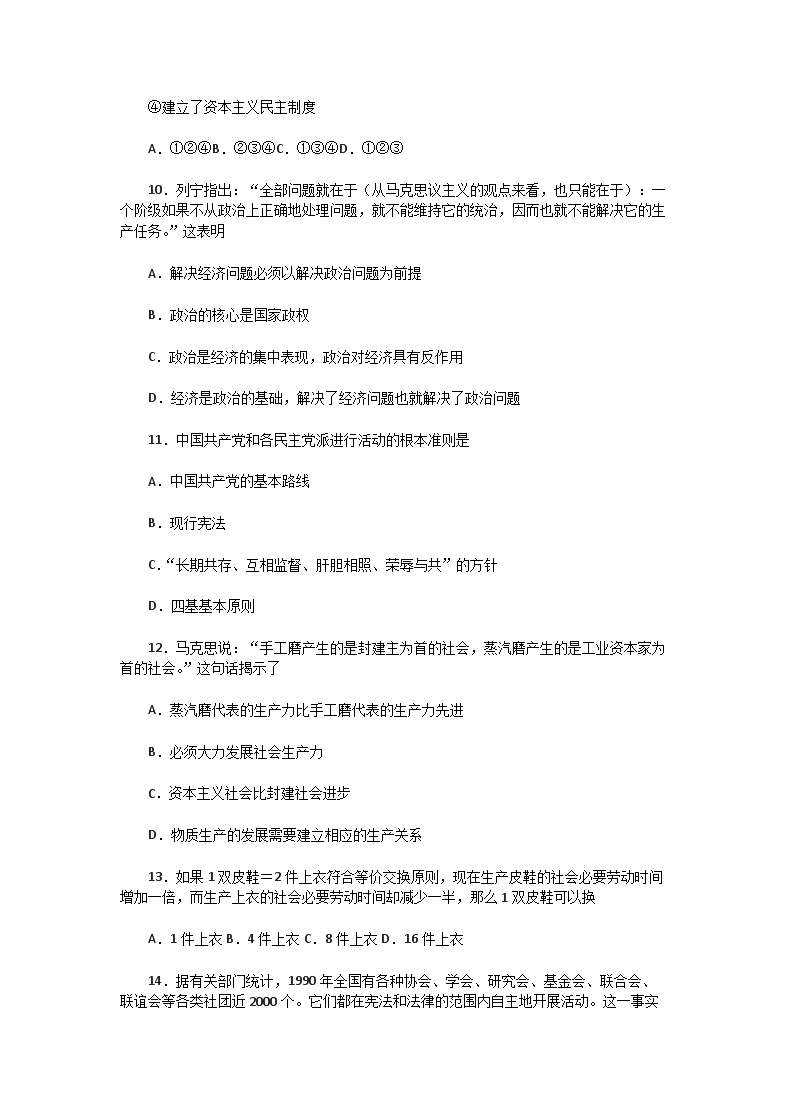 【文档名称】 1992年黑龙江高考文科政治真题及答案(Word版).doc
