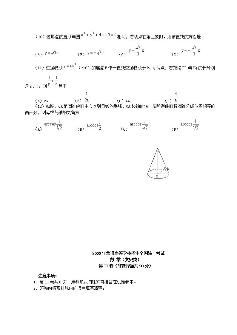 【文档名称】 2000年云南高考文科数学真题及答案(Word版).doc